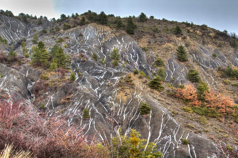 En se promenant cet après-midi, on s’est trouvé sous une averse de grêle (gros comme des petits pois). Elle a duré une vingtaine de minutes, blanchissant les creux des marnes avant de se transformer en pluie.