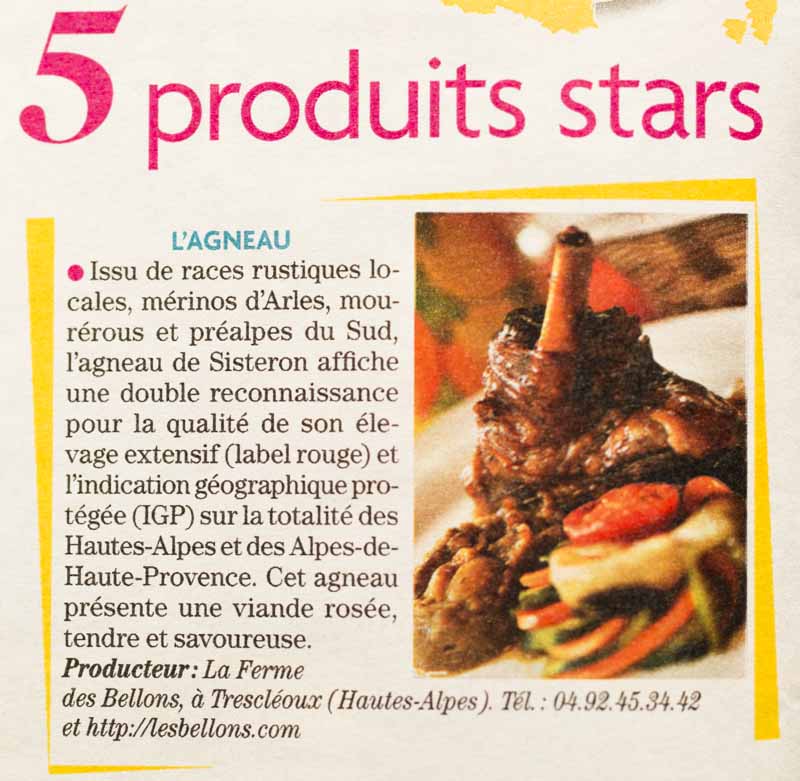 Notre agneau savoureux a partagé la même page que le rosé de Provence, le fromage de Banon, l’huile d’Olive et les citrons de Menton. Bon appétit!